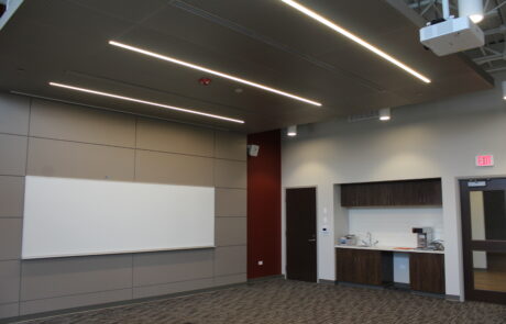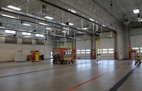 The electrical scope included a new incoming service and power distribution system to support all building equipment, receptacles, and the elevator. Energy-efficient LED lighting was installed in all spaces, including the administrative offices, bunk rooms, lounge, and apparatus bays, with controls for performance and efficiency. A new fire alarm system was provided, along with an emergency/standby natural gas generator designed to carry the full electrical load of the building, ensuring uninterrupted operation during critical events.